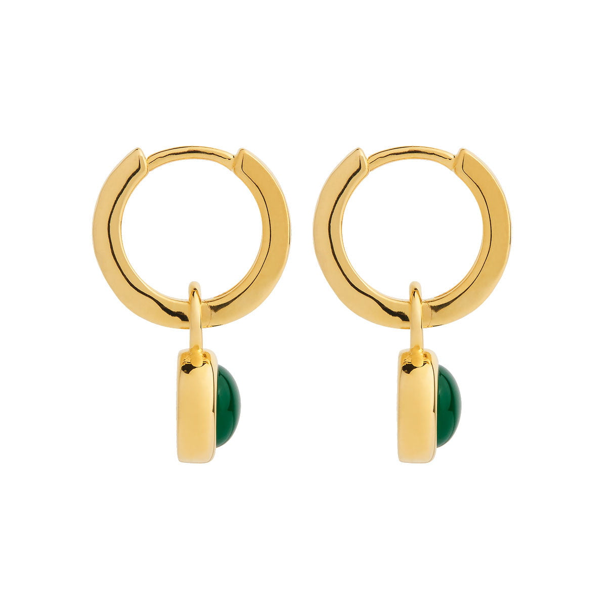 Najo's Solace huggie earring combines refined minimalism with natural beauty. Crafted from antitarnish silver with 14k yellow gold plating, the textured band hugs the earlobe with understated elegance. A 6mm cabochon green onyx drop adds a subtle pop of colour and organic sophistication. Measuring 7.5x20mm, these versatile earrings transition effortlessly from everyday wear to evening occasions, offering a contemporary take on a timeless silhouette.