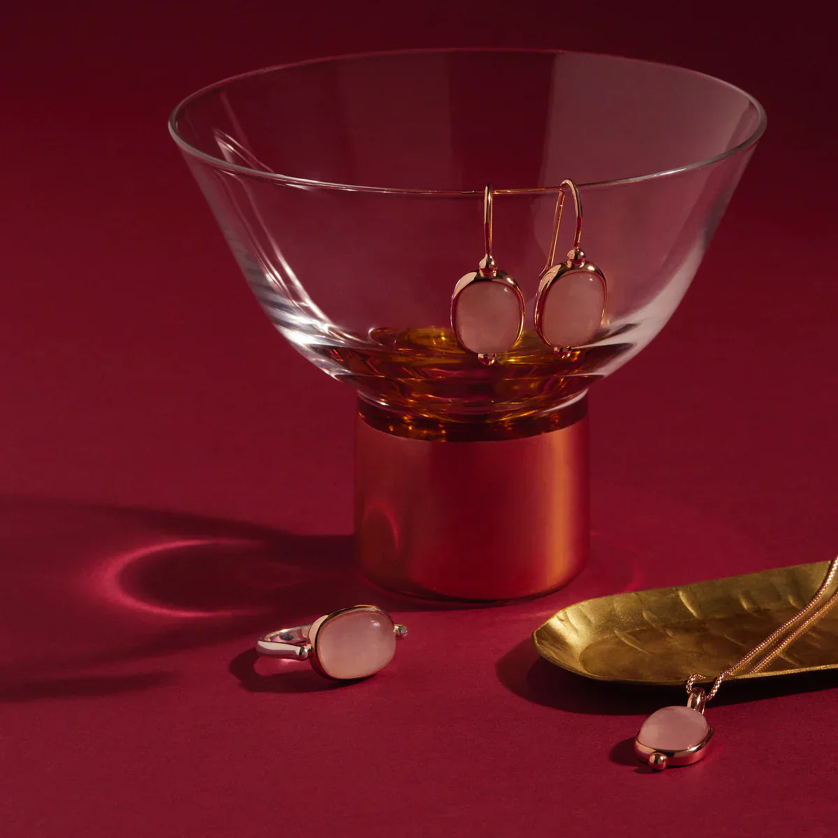 Inspired by Paris in bloom, the effortlessly glamorous Fleur Earrings channel the soft light and fluid beauty of springtime Impressionist watercolours. Their impeccably crafted design is defined by the most beautiful rectangular rose quartz cabochon gemstones. The intentional open-back design of the rose gold-plated settings invites the light in, allowing these stones of unconditional love to emit an ethereal glow.