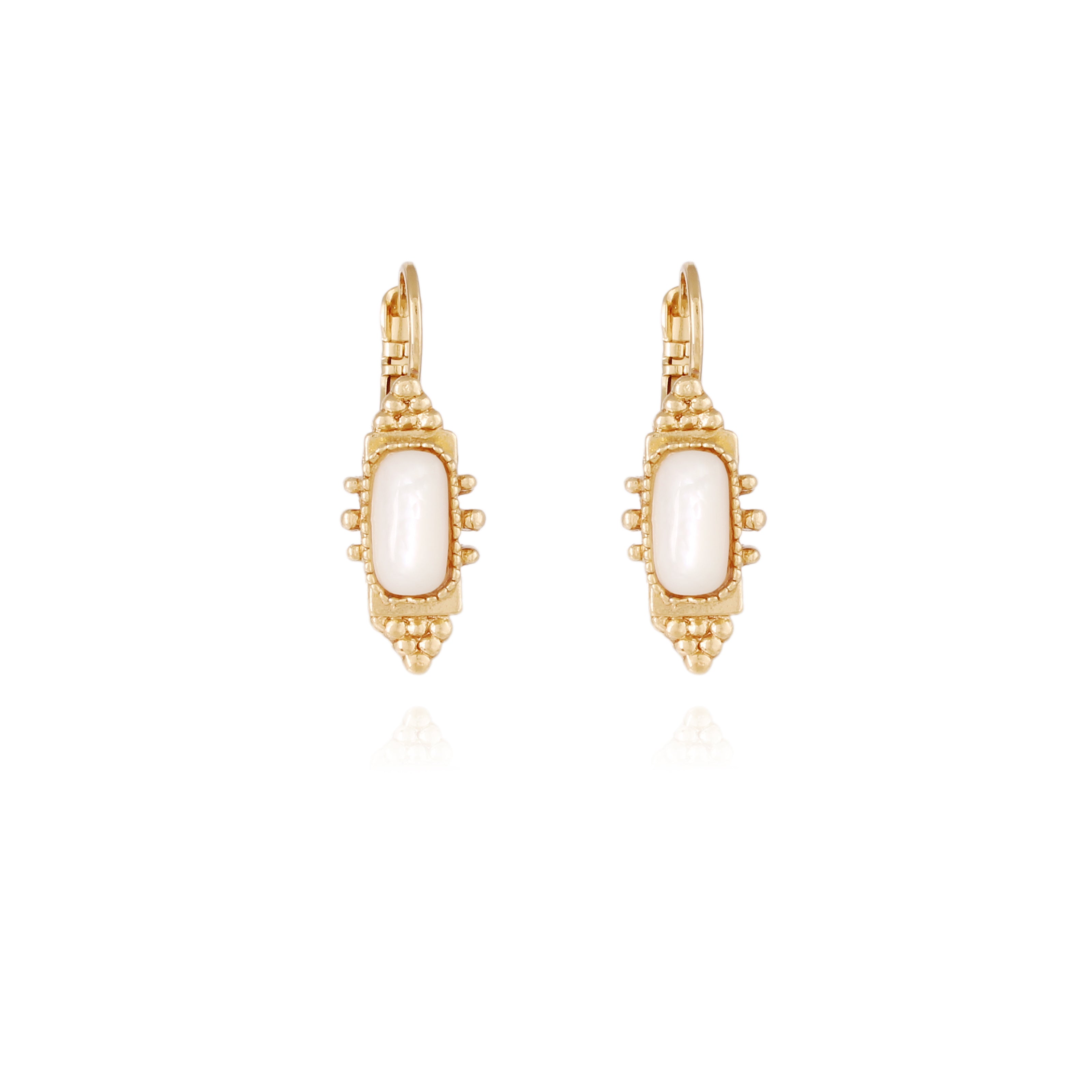 Bring an air of sophistication and elegance to any outfit with these stunning earrings crafted from gold-plated metal. The carefully selected Mother of Pearl gemstone adds an extra touch of luxury, making these earrings the perfect accessory for any occasion.