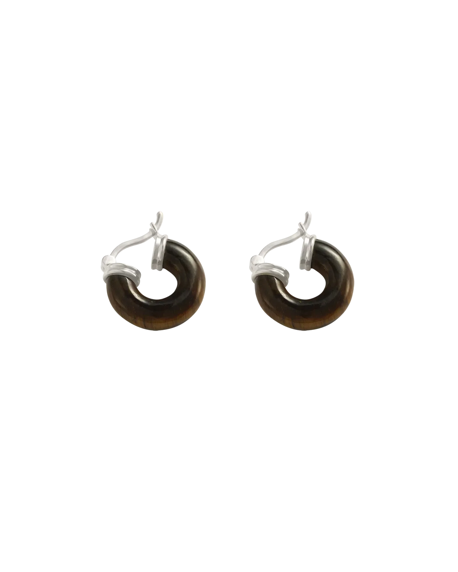 Tempo Tiger's Eye Hoops showcase a striking architectural design that commands attention through thoughtful proportions and form. Crafted in sterling silver with warm, banded tiger's eye stones, these hoops deliver an understated yet powerful presence—equally at home with minimalist styling or layered alongside other pieces. The natural striations of the stone bring depth and movement to each wear. Complete the collection with the matching Tempo Tiger's Eye Necklace for a cohesive, grounded aesthetic that speaks to intentional adornment.